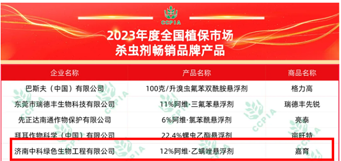 嘉育®—2023年全国植保市场杀虫剂畅销品牌产品